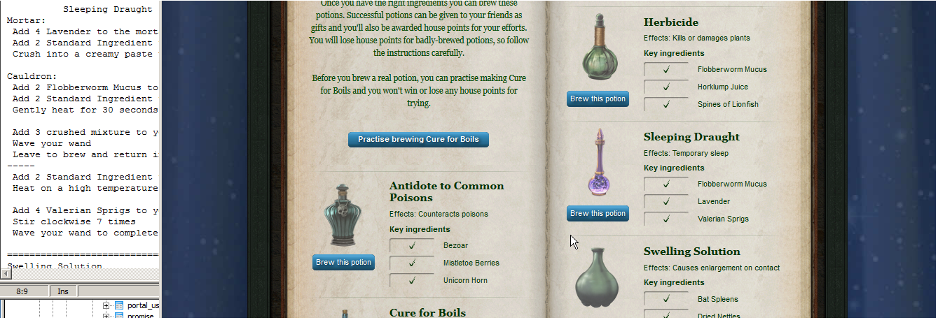 I find it helpful to have the brewing instructions available to look at between steps. You can always click on the recipe, but that takes time. By having the instructions next to the browser means I can check what is next while I am using something that doesn't require close watching. When you first start brewing a potion, you will need to review the individual steps closely as you go. The more you make the potion, the less you will need detailed instructions, but can still use helpful hints.
